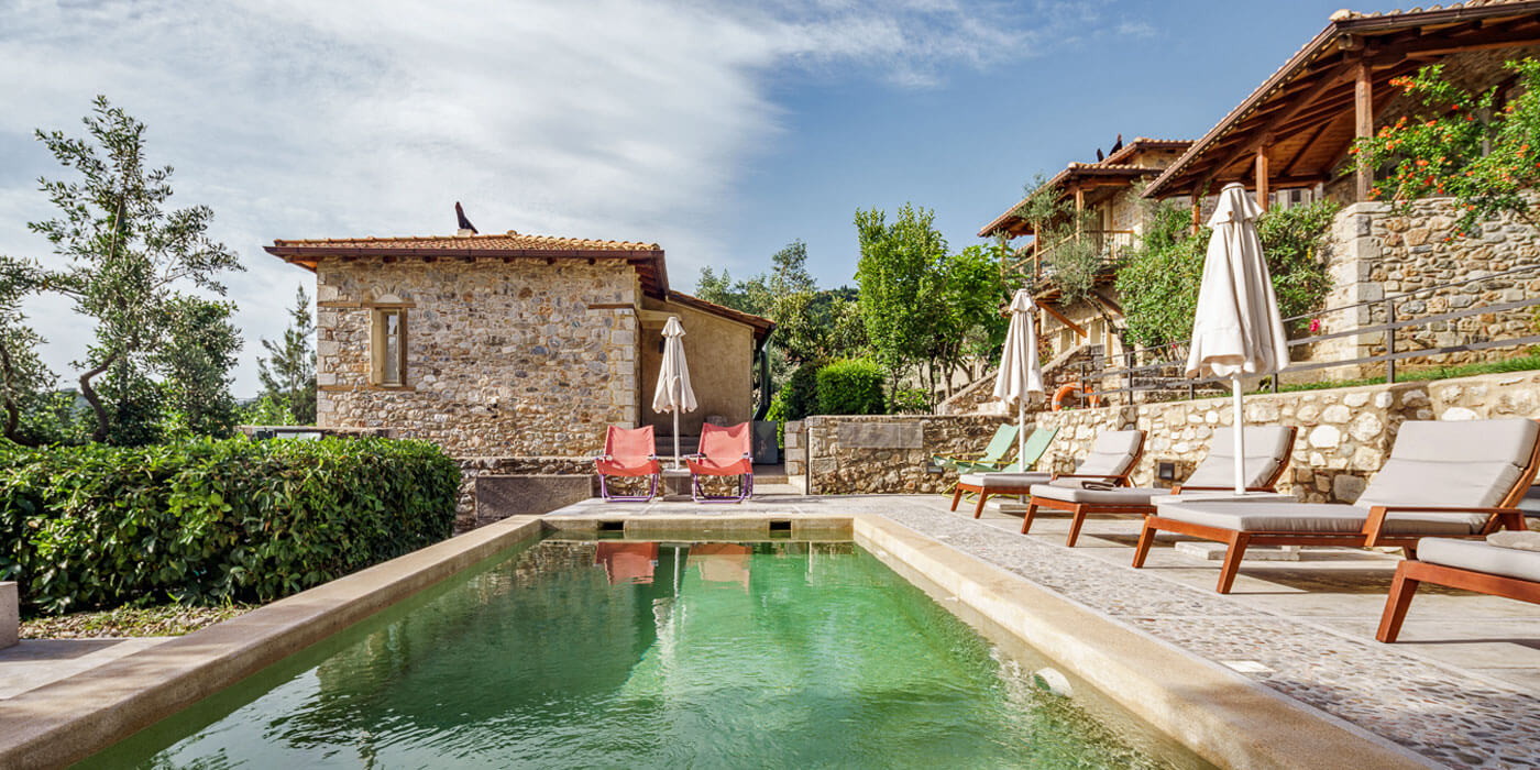 The rooms are freshly whitewashed, with stone, polished concrete or wood detail. Most have fireplaces or a wood-burning stove, a couple have Jacuzzi baths, and all have a private balcony or veranda. Each sleeps 2-3, except Branches, which sleeps 4-5. Expect a mix of Greek rusticity (sheepskin rugs, chunky olive-wood shelves) with a playful injection of contemporary design (pink sinks, red phones and feature light bulbs).